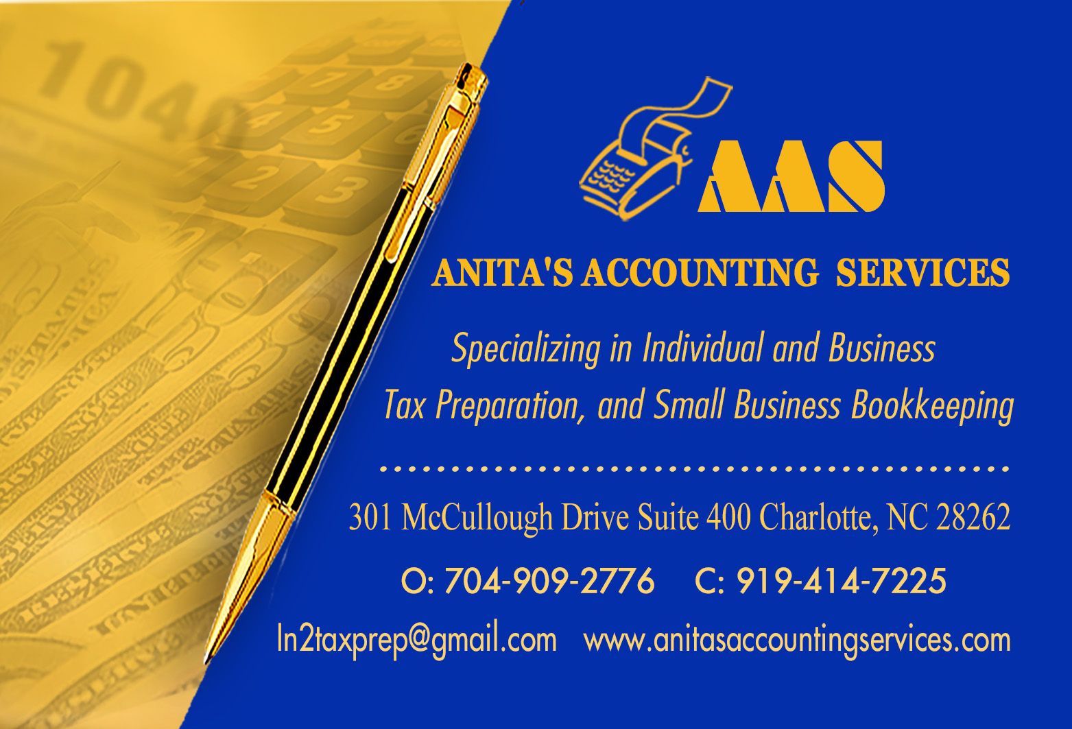 I've been getting my taxes done at Anita's Accounting Service for several years and have always been pleased with the level of professionalism from Mrs. McNeil. She is very personable, efficient and more importantly, trustworthy.